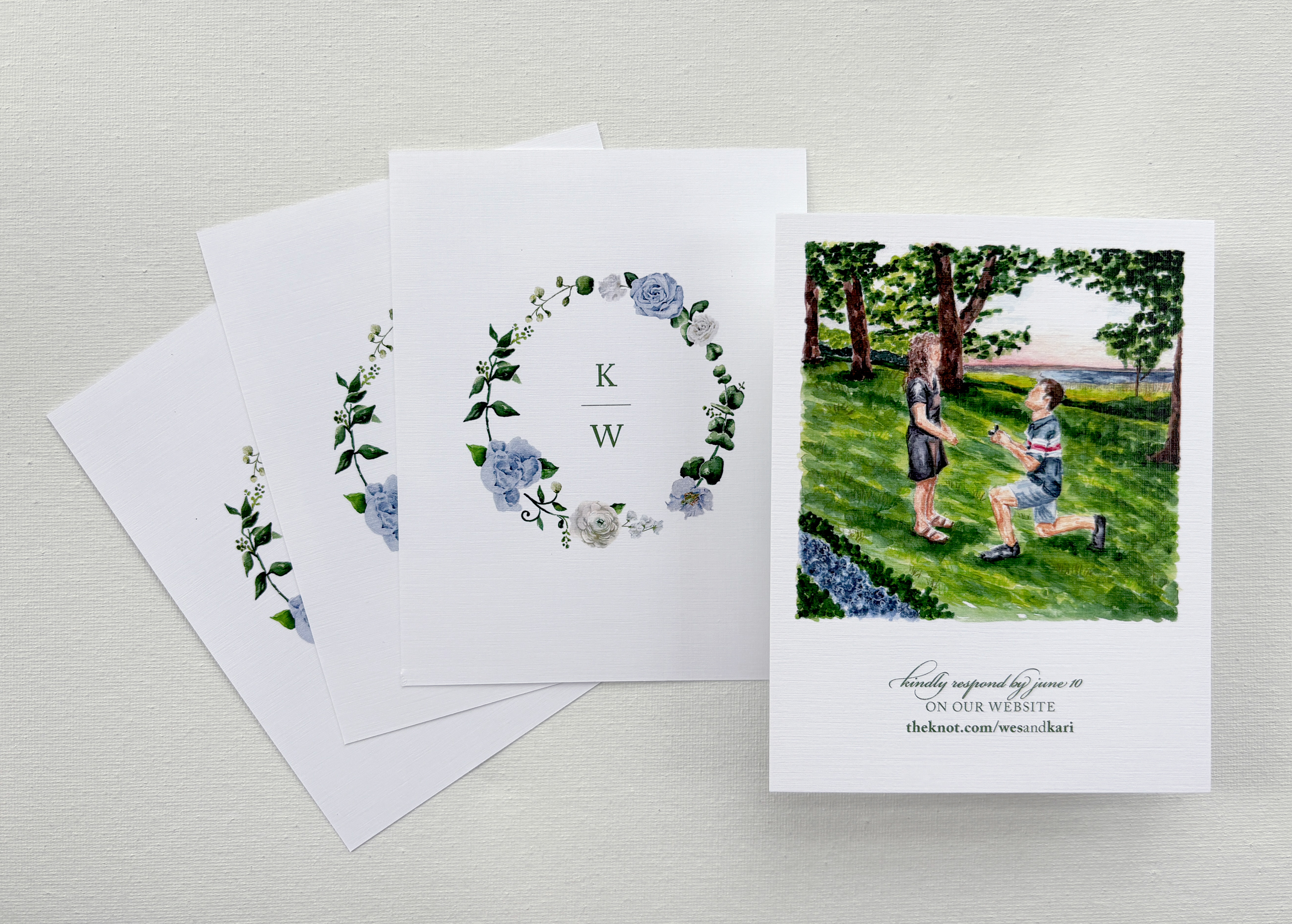 For this classic summer wedding, the suite featured white and blue florals, ethereal transparency, and an homage to the couple's beachside proposal.