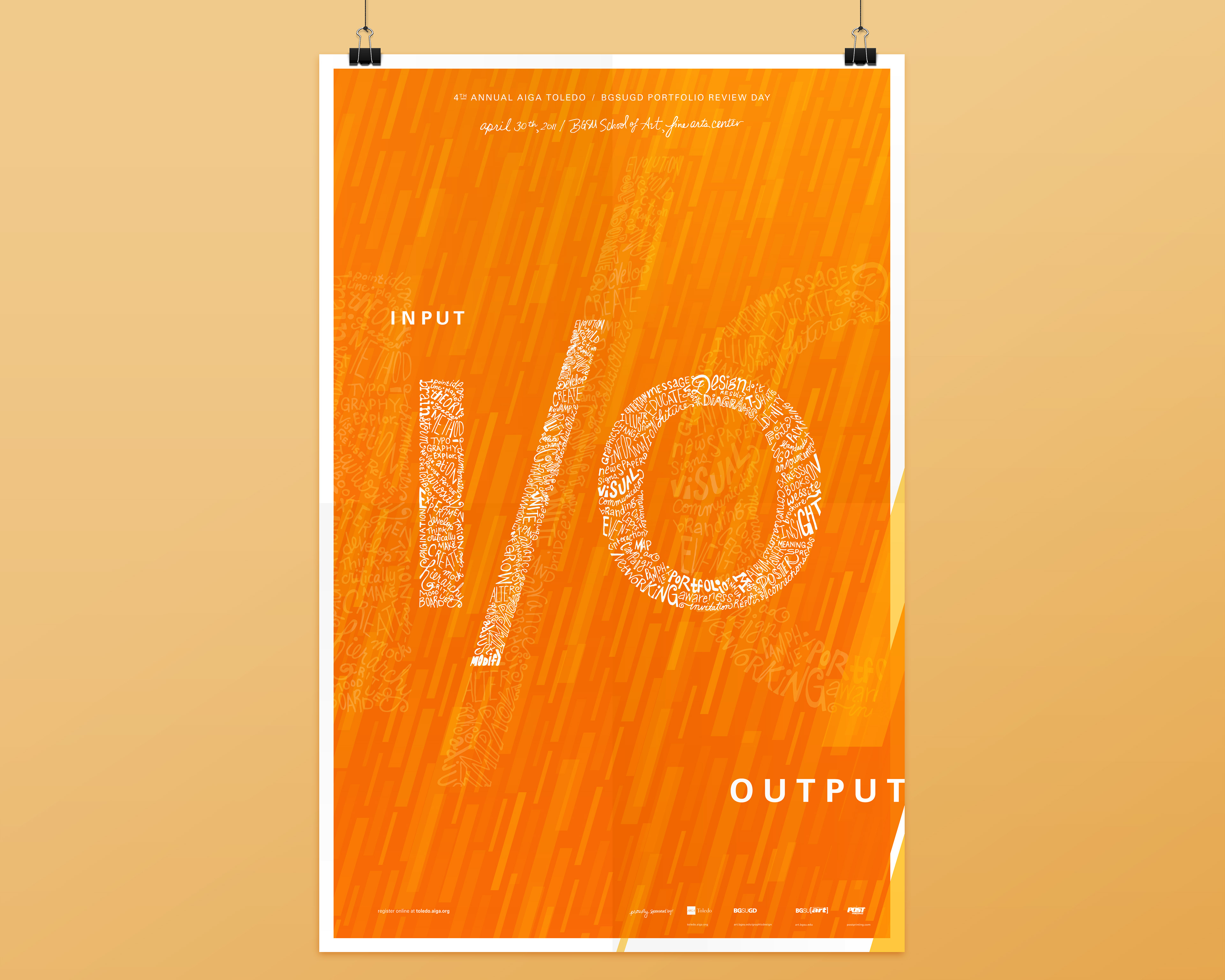 Event identity created for the 2011 BGSUGD / AIGA 4th Annual Portfolio Review Day. Selected typography was published in Design: Type, A Seductive Collection of Alluring Type Designs by Paul Burgess (Rockport Publishing), 2012.