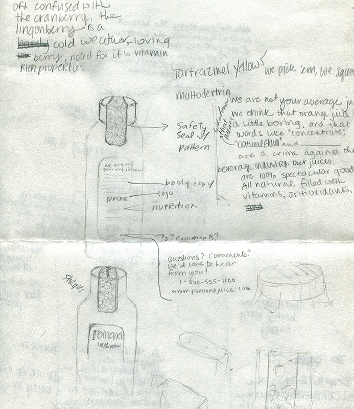 Undergraduate project to create packaging for a fictional CPG brand. Illustrated each flavor variety with watercolor and hand-cut each label to allow fruits to explode off of the label.