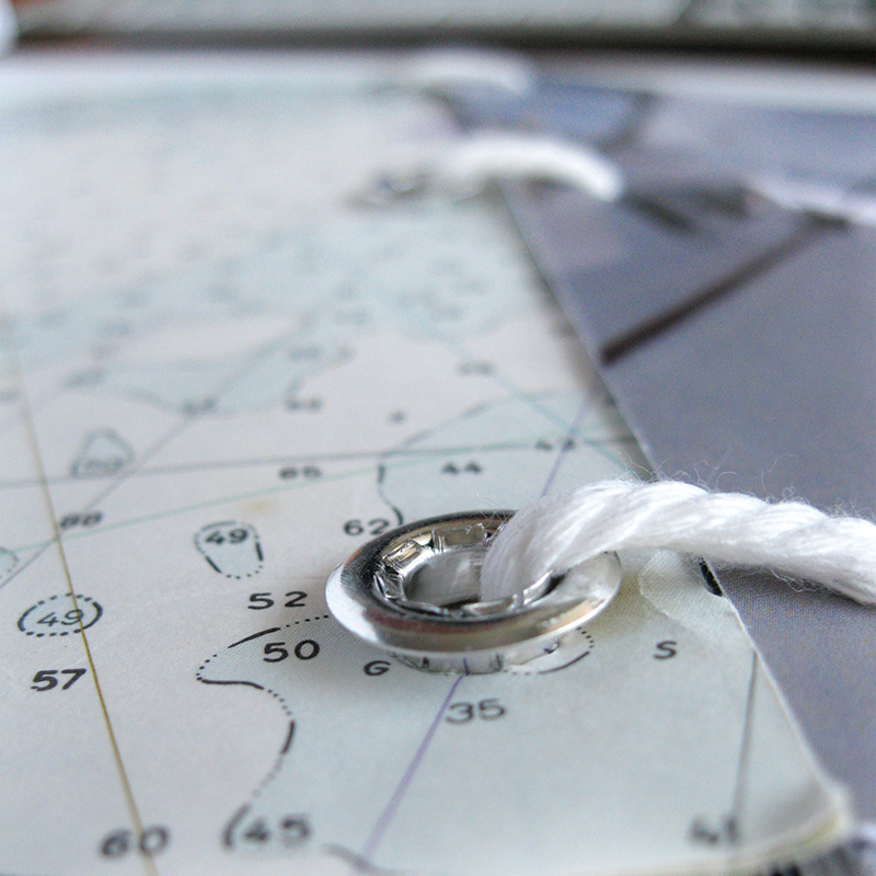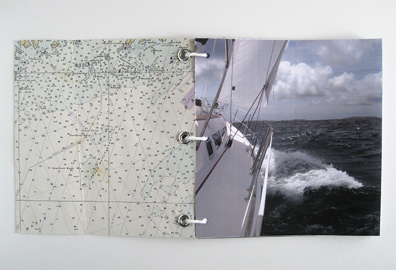 Hand-created book to explain sailing in a simplified format. Cover printed on a real nautical chart. Inspired by personal experiences.